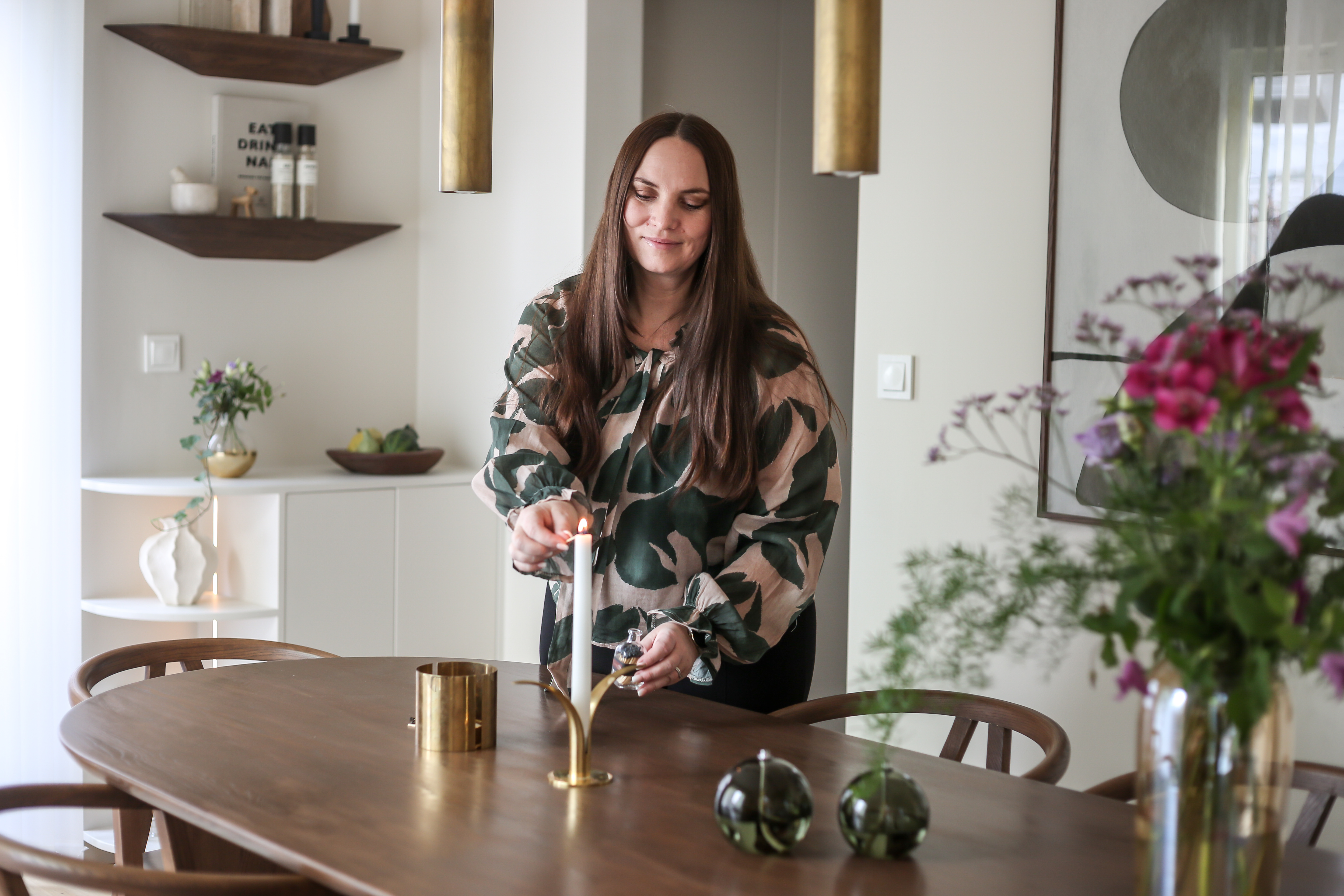 - Jag blandar modern skandinavisk design med lite inslag av retro och IKEA-hack för att få en stil som passar både själen och plånboken. Jag älskar ton i ton, platsbyggda möbler och när det finns en röd tråd genom hemmet. Gärna lite kul och oväntade detaljer. Men till skillnad mot vad många kanske tror som ser mina projekt på Instagram, så är det en ganska lugn känsla här hemma, med varm ljusbeige bas och inslag av rökt ek, säger Cilla.