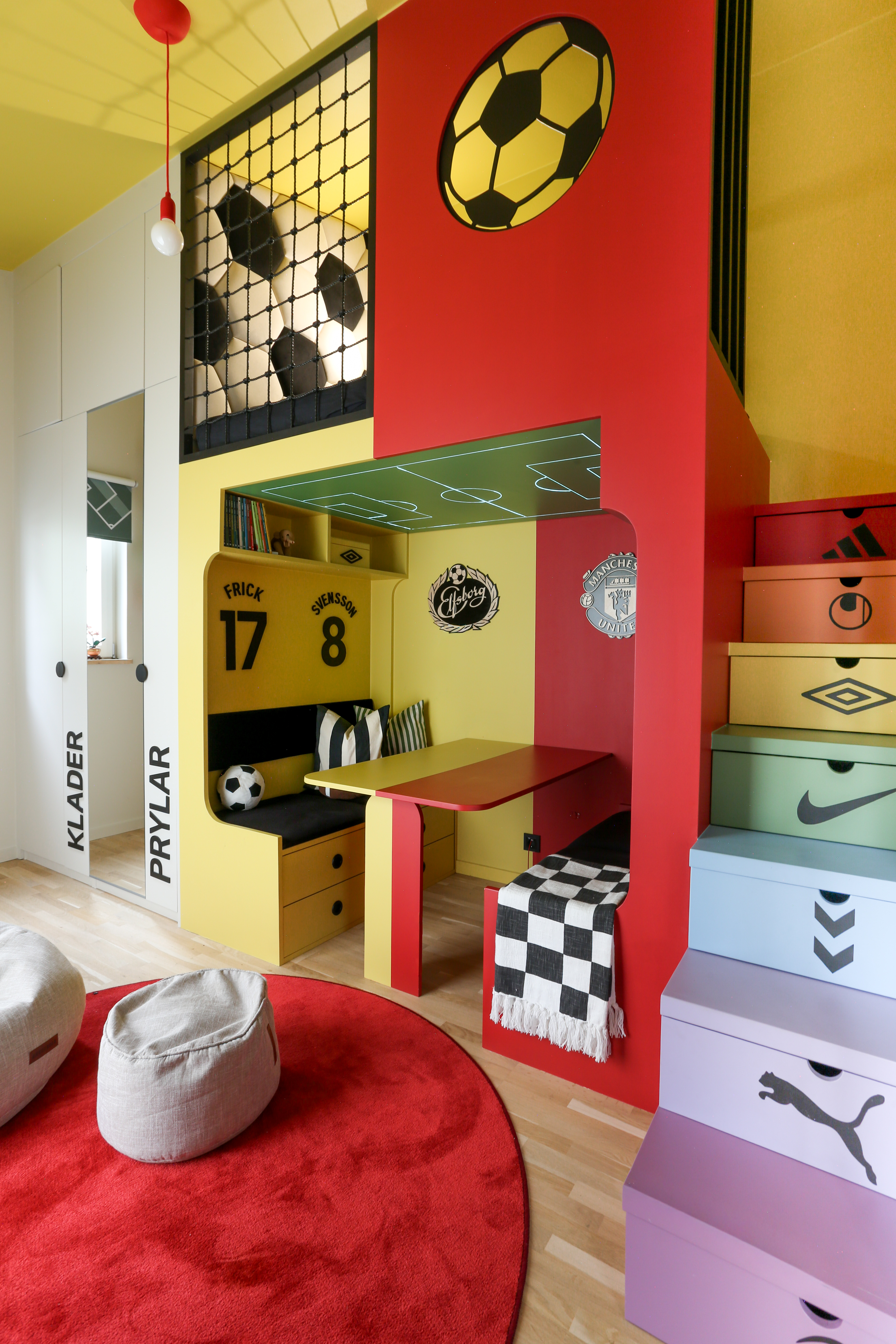 I sonen Noels rum fick mamma Cilla ett tydligt önskemål; ett fotbollsrum med en matta som matchar favoritlaget.