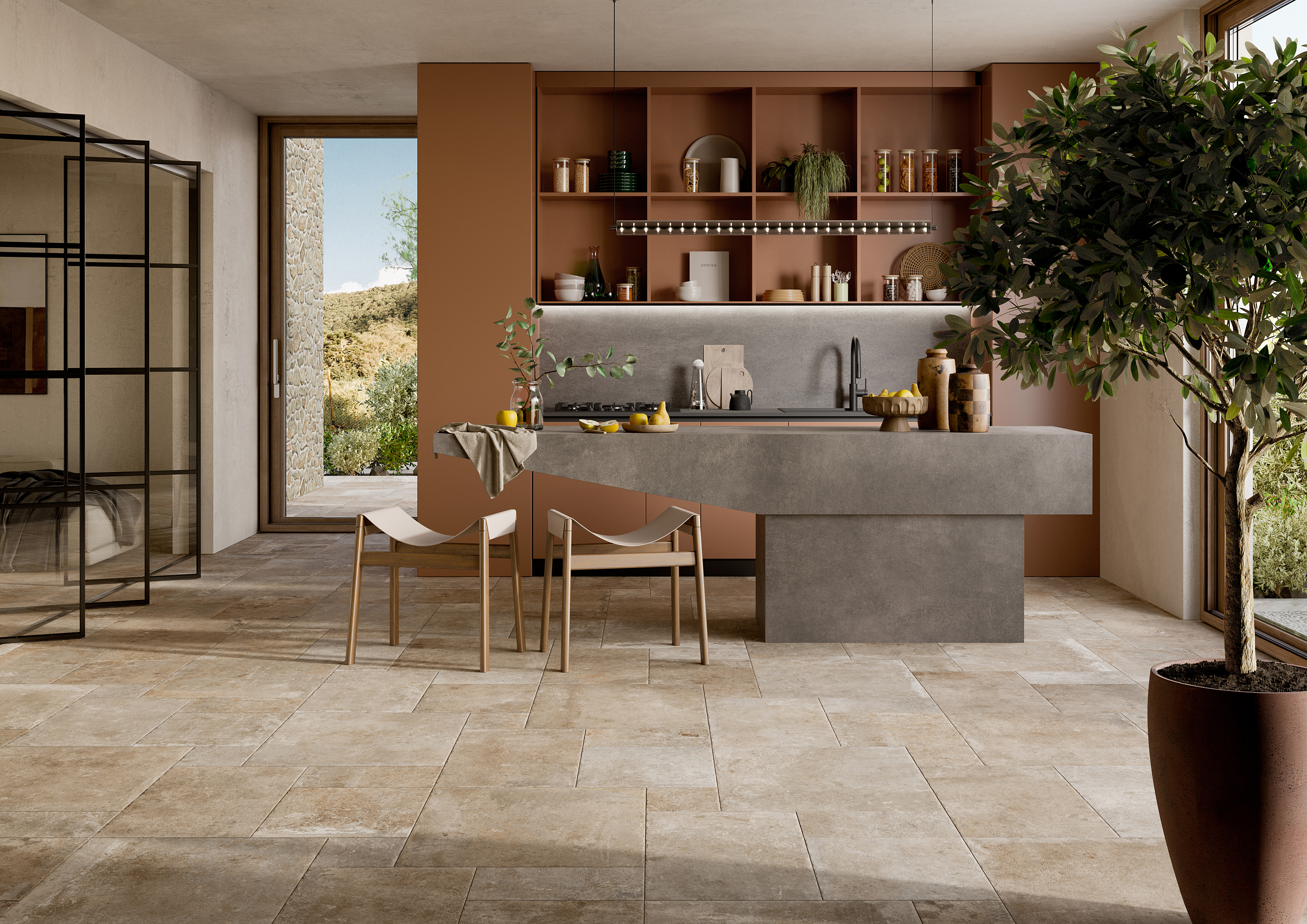 Den värmande färgpaletten skapar en känsla av trygghet och närvaro, samtidigt som den fyller rummet med energi och mjuk livskraft.