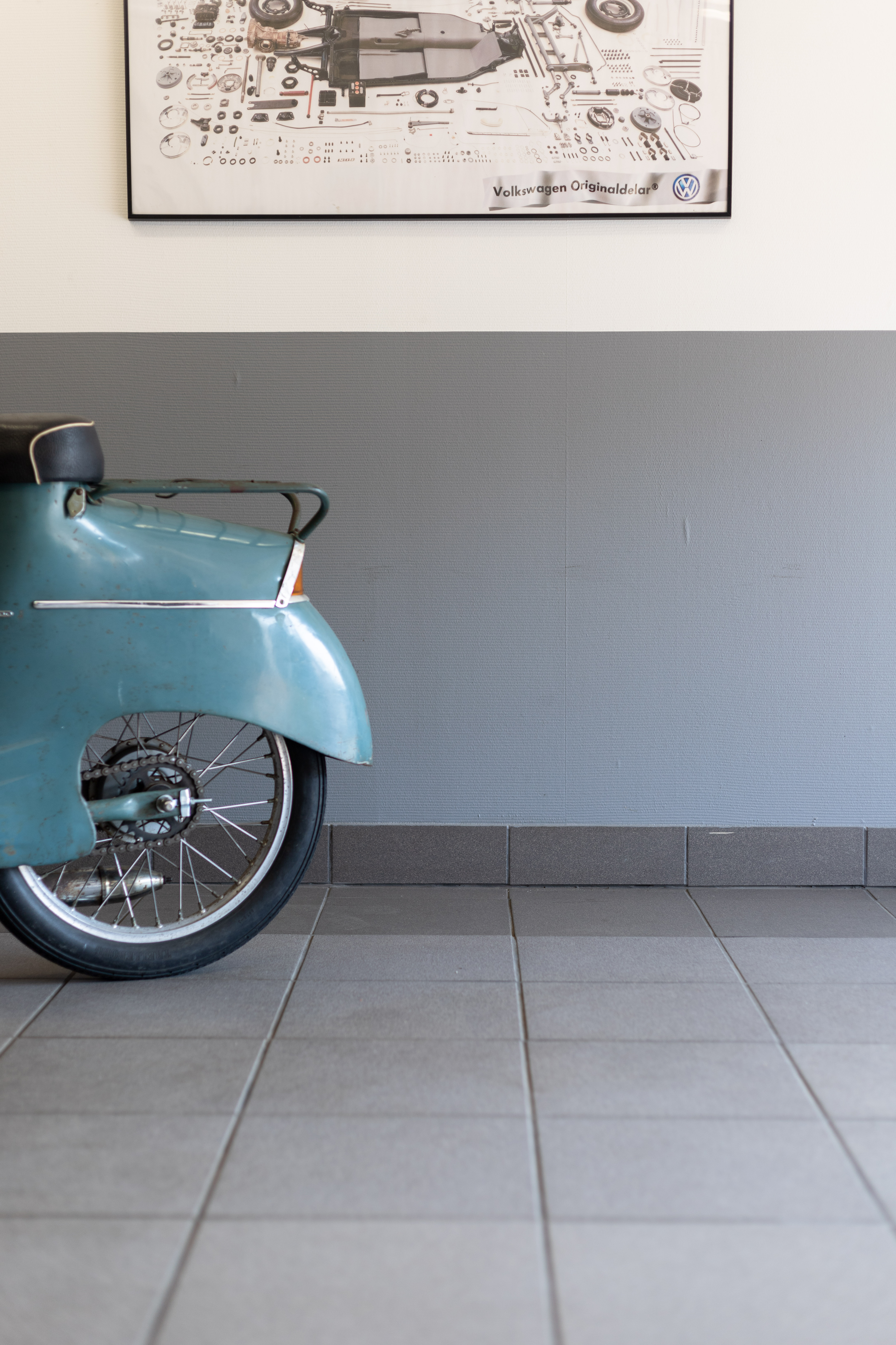 Bazo-serien är en slitstark klinker som lämpar sig utmärkt för garage och andra utrymmen med höga krav. Den är lätt att underhålla, och dess mönstrade yta döljer smuts och fläckar bättre än ett enfärgat golv.