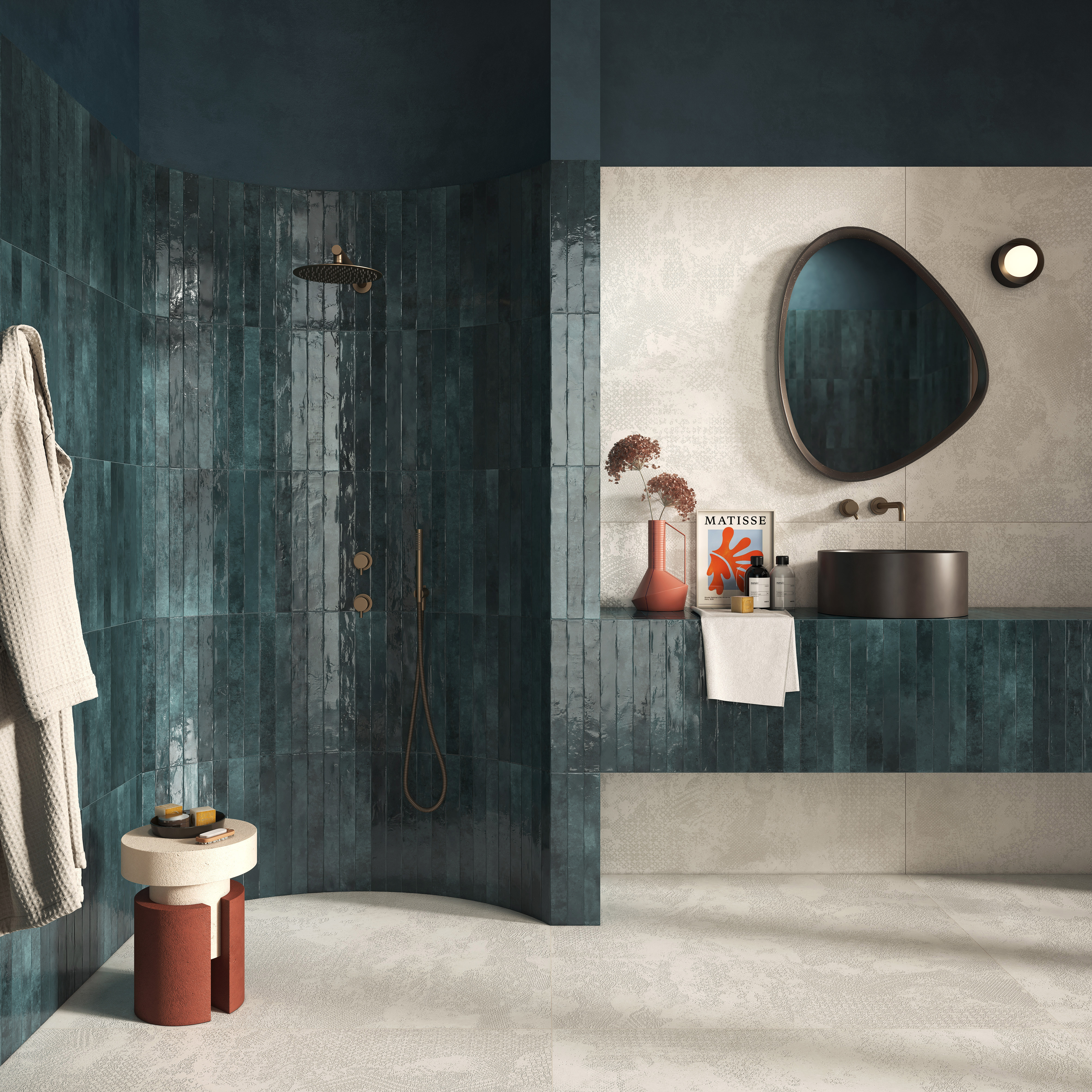 Flair är en elegant platta med mjukt oregelbunden form och vackra, nyanserade färgtoner. Serien återskapar känslan av handgjort kakel och ger rummet en personlig och lyxig karaktär – perfekt som fondvägg eller stående i duschen.