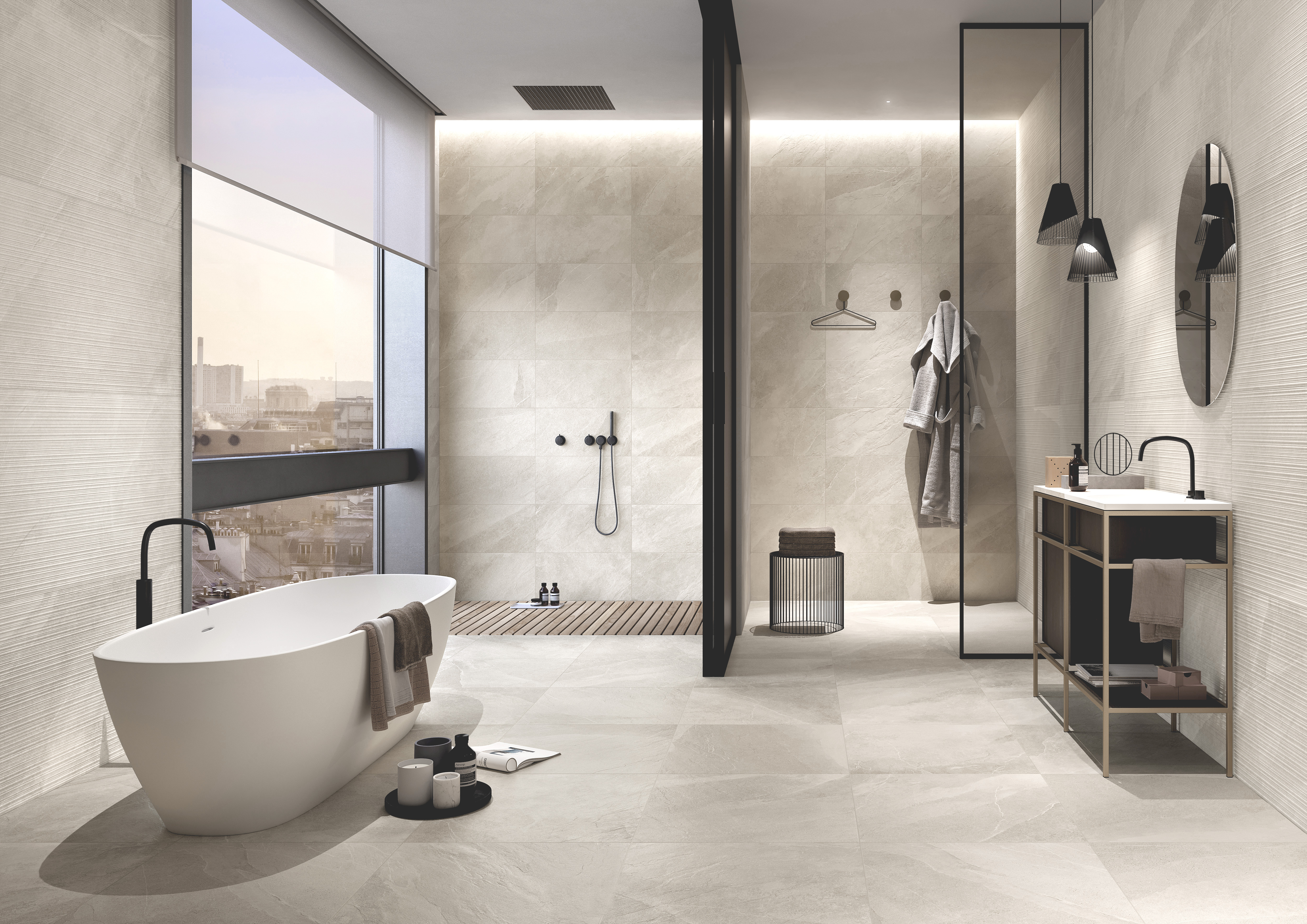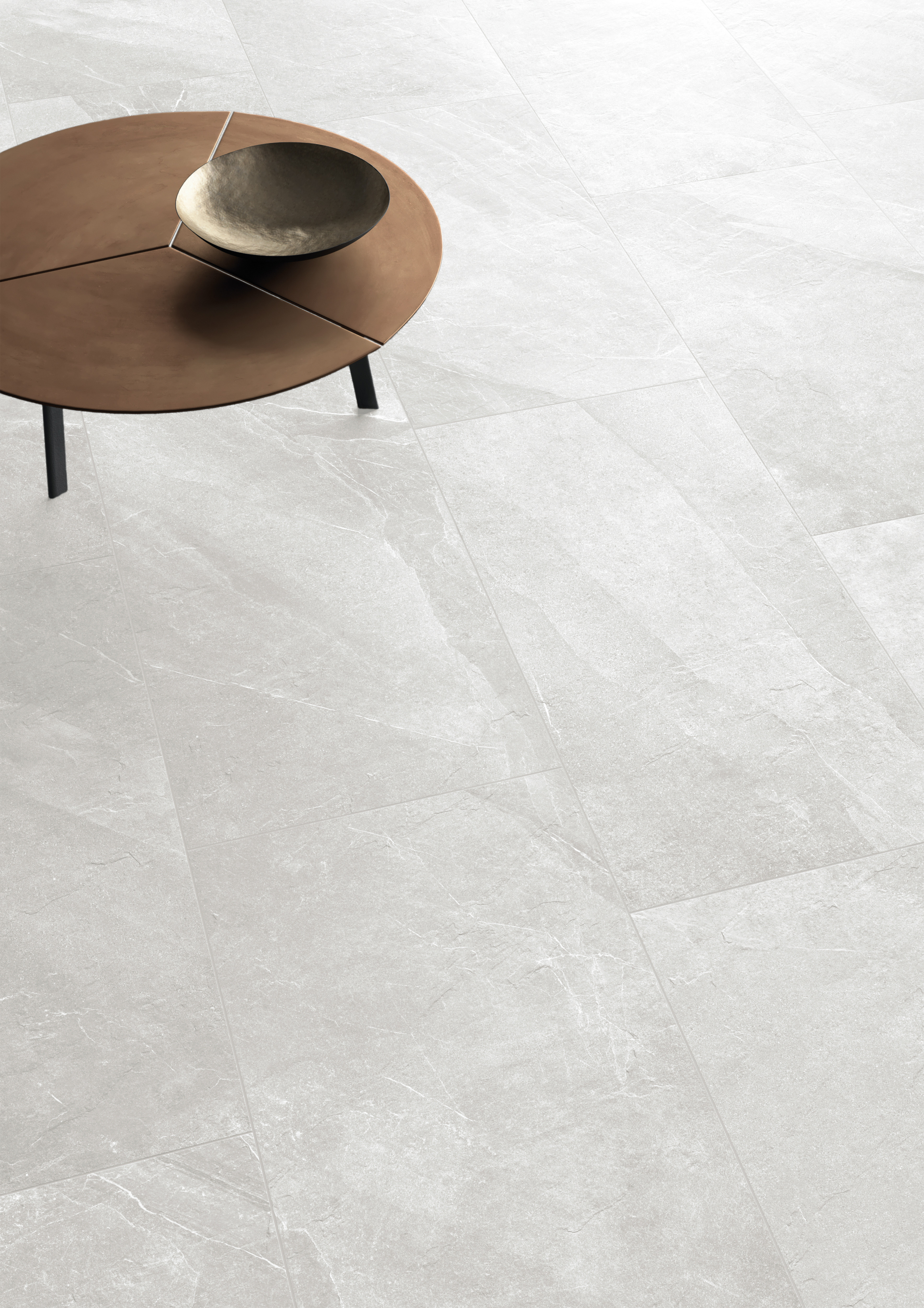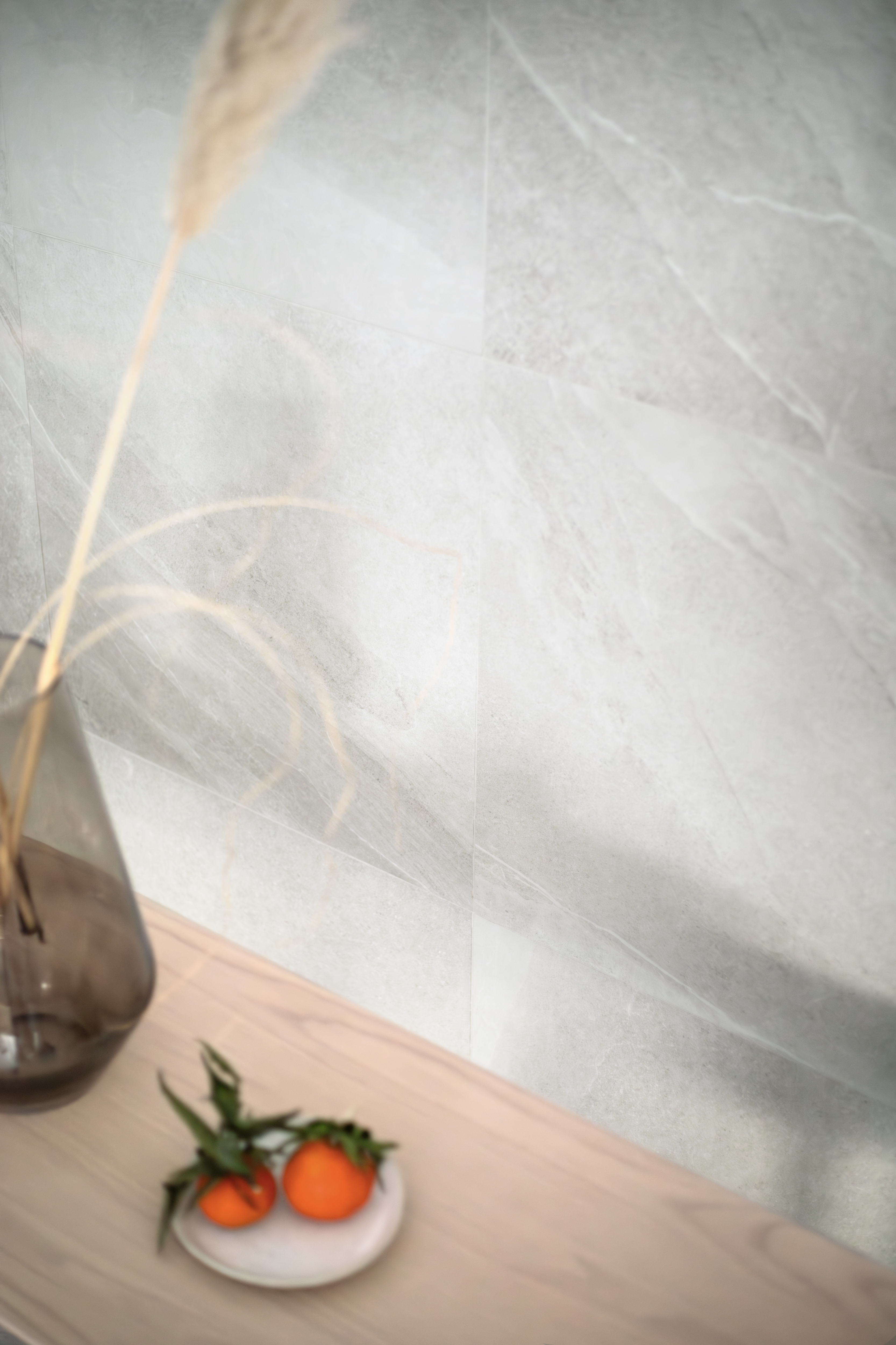 Nutida design utstrålar denna serie med sina finstämda toner som kombineras med otroligt fint stenmönster. Plattan har inslag av subtila fina strimmor som gör serien unik. Plattorna är tillverkade i granitkeramik