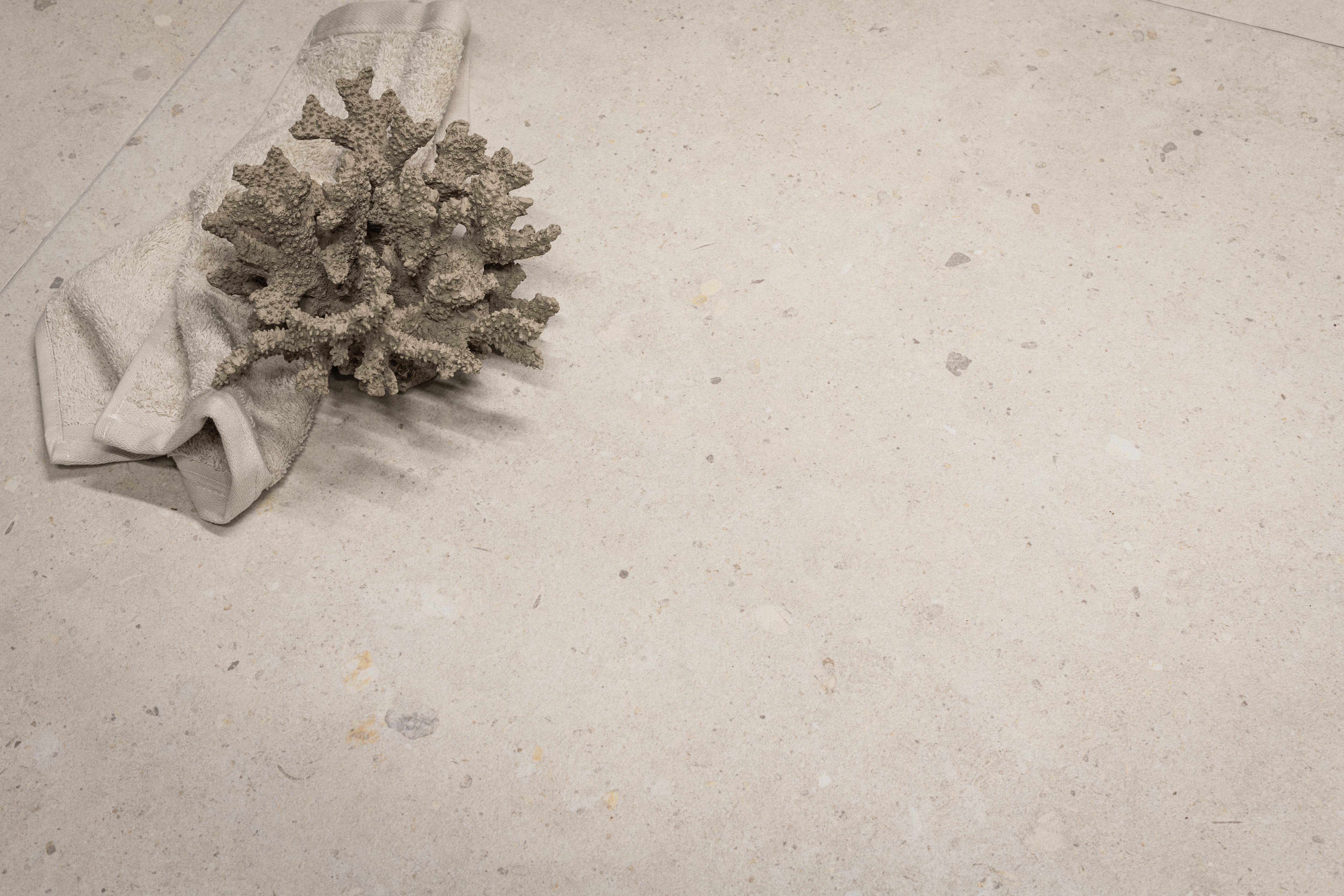 Koster är en modern klinkerplatta som kombinerar kalkstenskänsla med en touch av terrazzo. Färgerna i serien är mjuka och naturnära men med terazzo stenarna får plattan mycket karaktär och attityd.