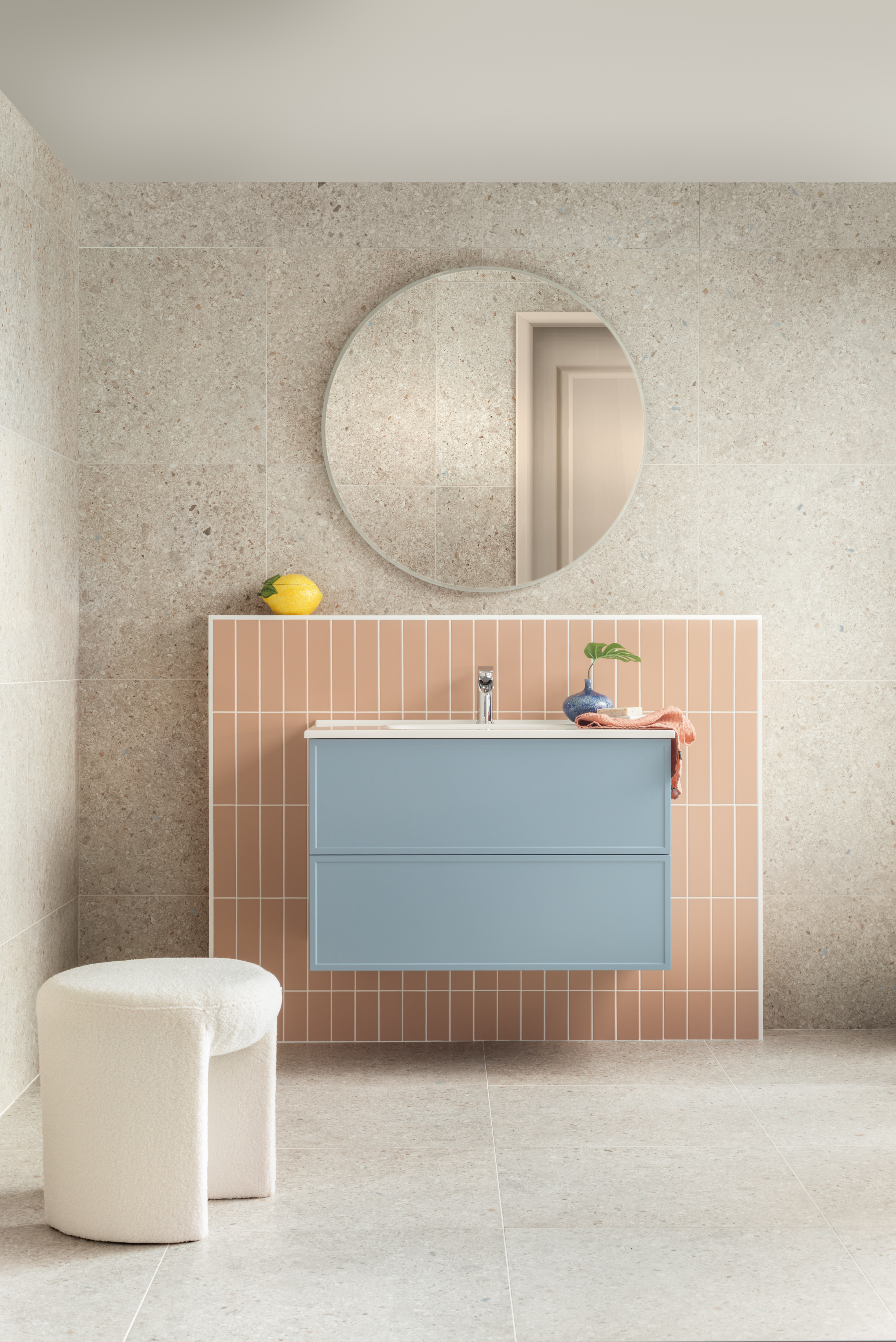 Marquise är en terrazzo serie med en modern touch! Mönstret i denna grantikeramik är behagliga och stilren, samt noggrant anpassad för just den skandinaviska marknaden. Med ett lugnt och diskret uttryck passar denna platta i båda badrum, hall och kök. Färgen Almond har en vacker ljusblå terrazzo-flake, passar dig som gillar ett snällt färgstänk.
