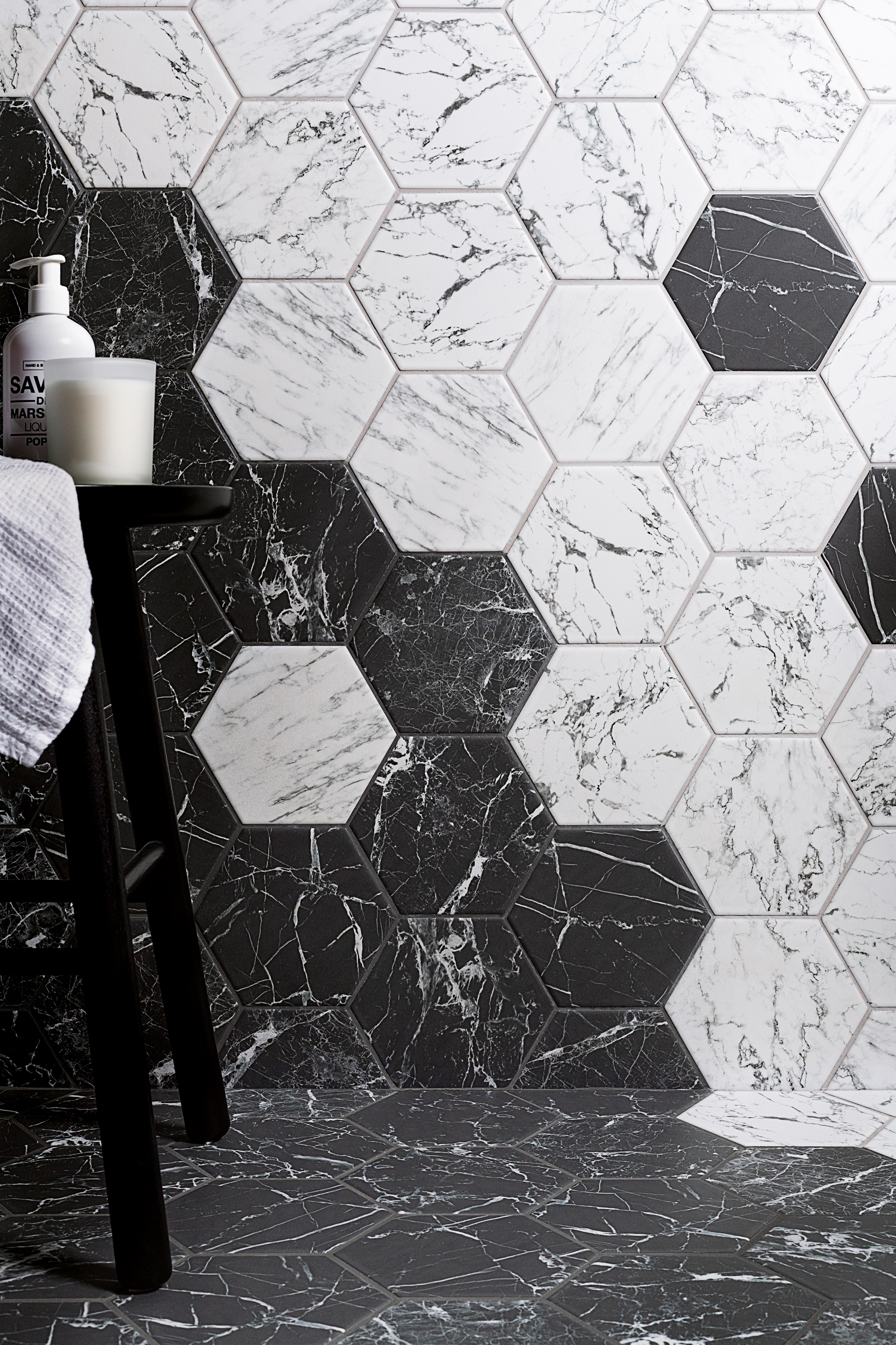 Serie Mariott är en klassisk marmorinspirerad hexagon klinker med karaktär. Passar på såväl golv som vägg. Antingen väljer du att använda en färg eller så kan du med fördel mixa alla tre tonerna.