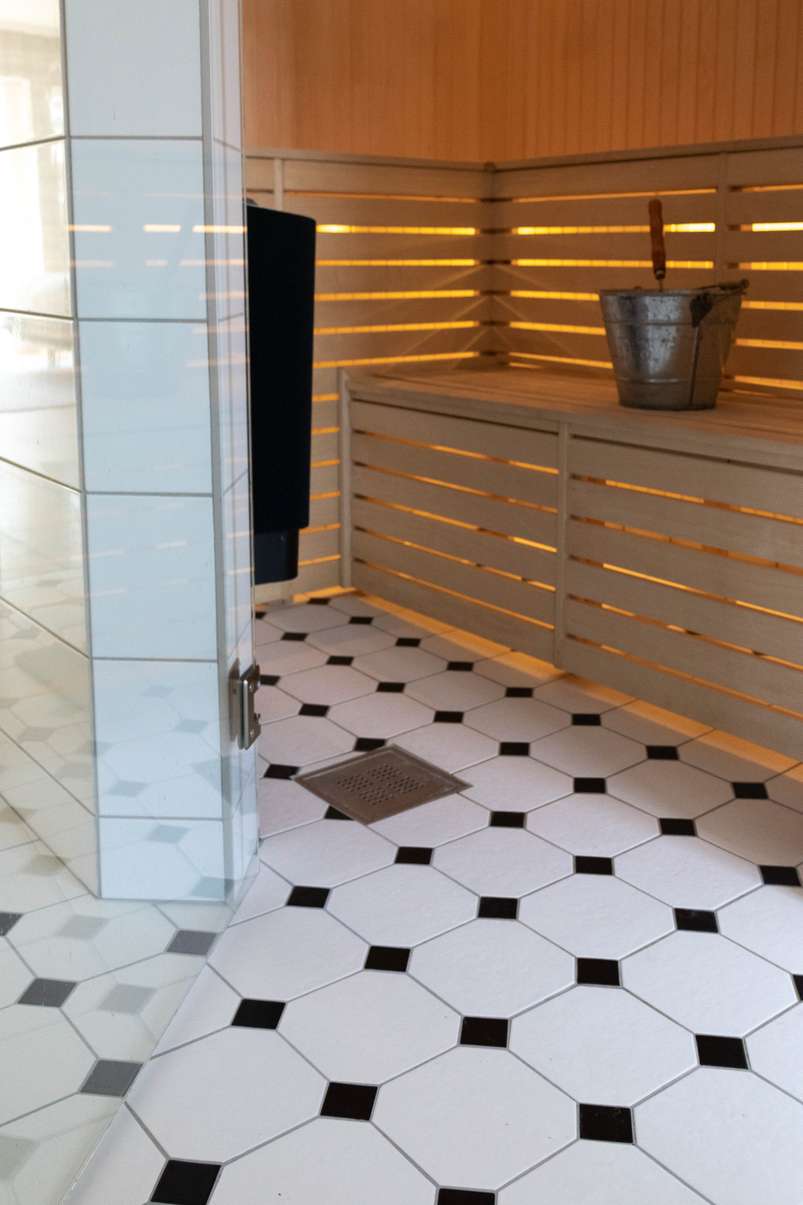 Serie Octagon är en klassisk platta som du väljer tillsammans med svart eller vit passbit.