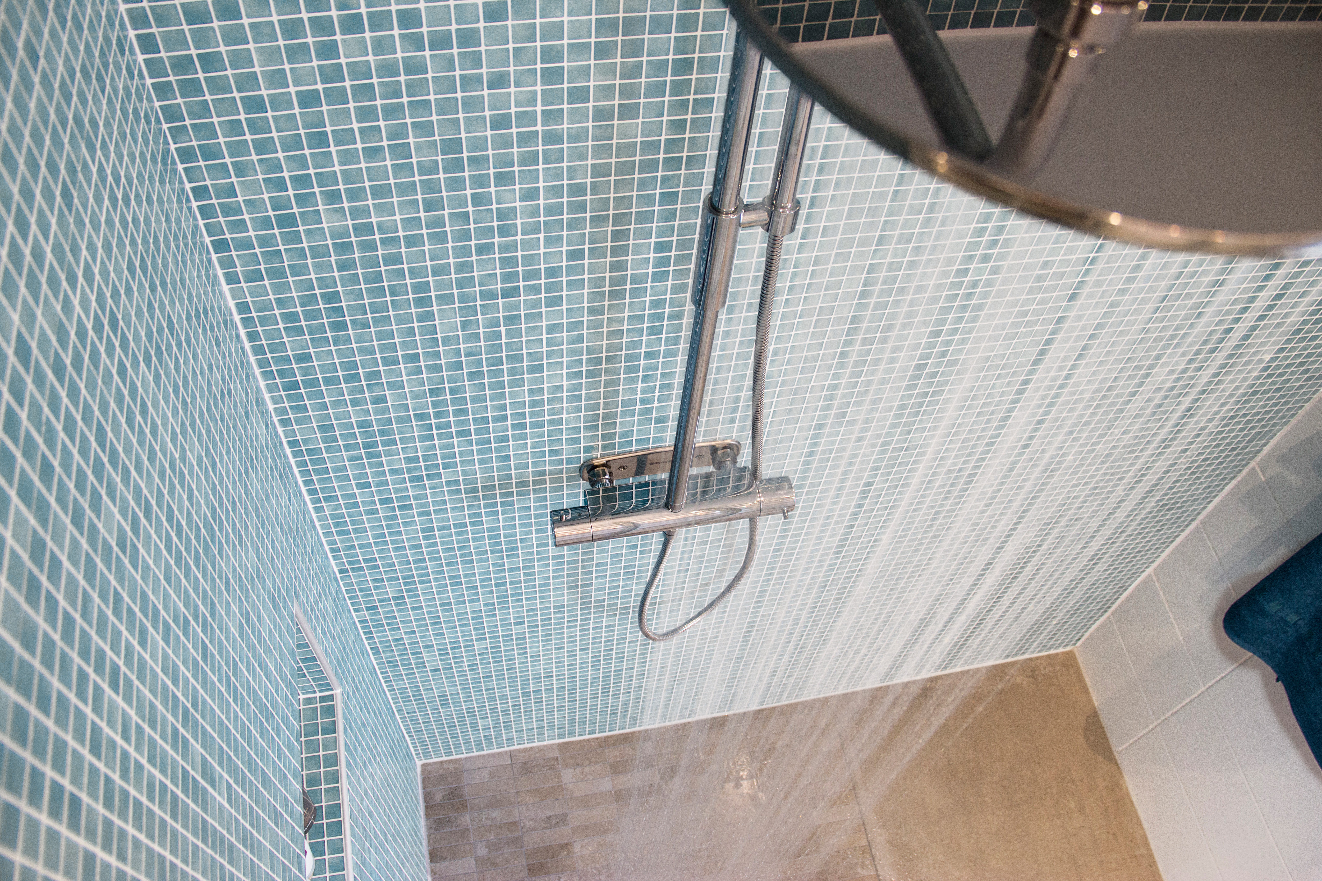 Serie Powder är en härlig glasmosaik som piggar upp. Mosaikerna har en akvarellkänsla och melerar vackert i färgtonerna. Snygg som kökskakel eller fondvägg i badrummet.