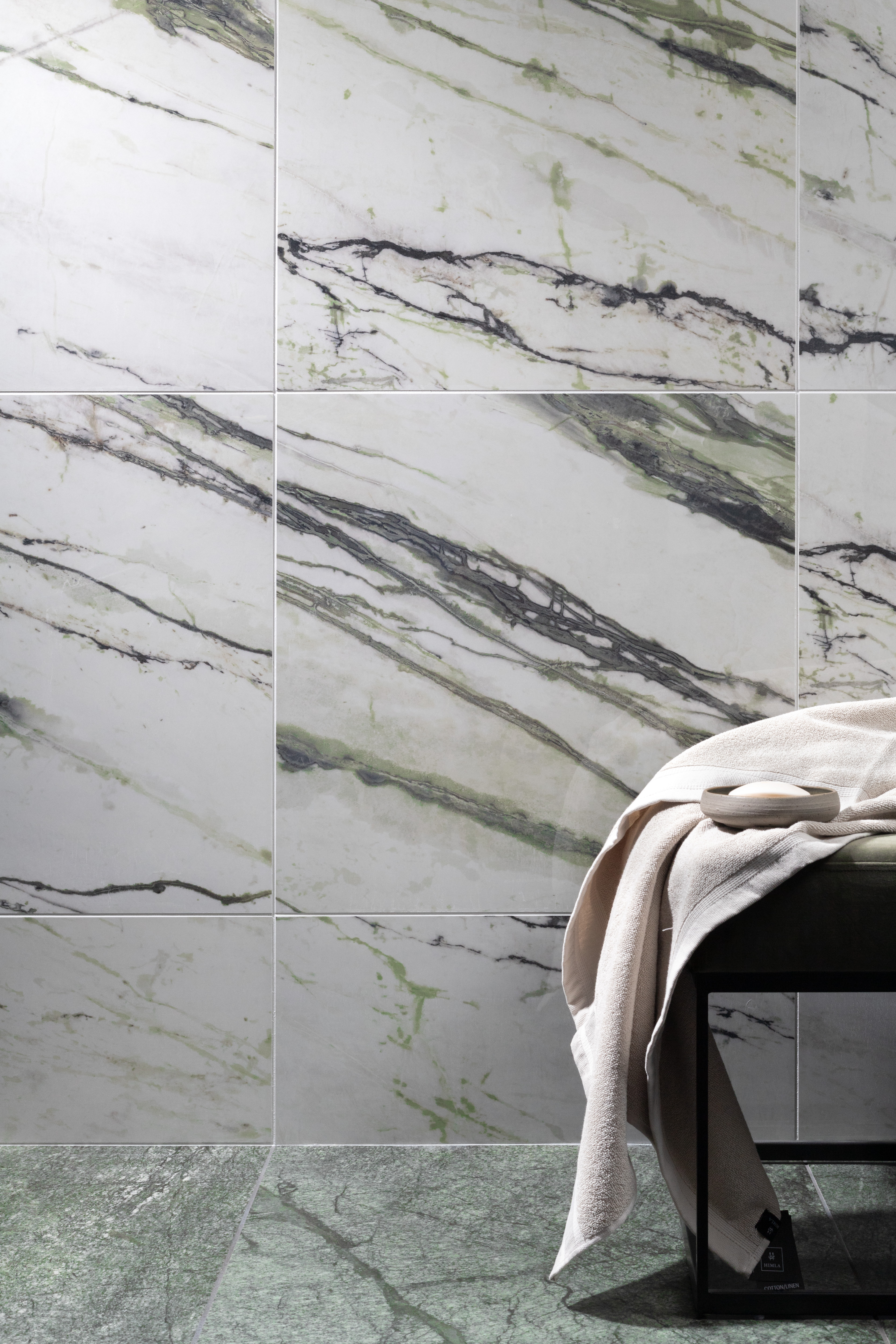 Serien Verde består av två fina marmor imitationer av grön marmor som är eleganta och förhöjer både vägg och golv. Dessa två sorter går utmärkt att kombinera, Irish green som tar sin inspiration från marmorsorten med samma namn som bryts på Irland och Calacatta green som bryts i Rumänien.