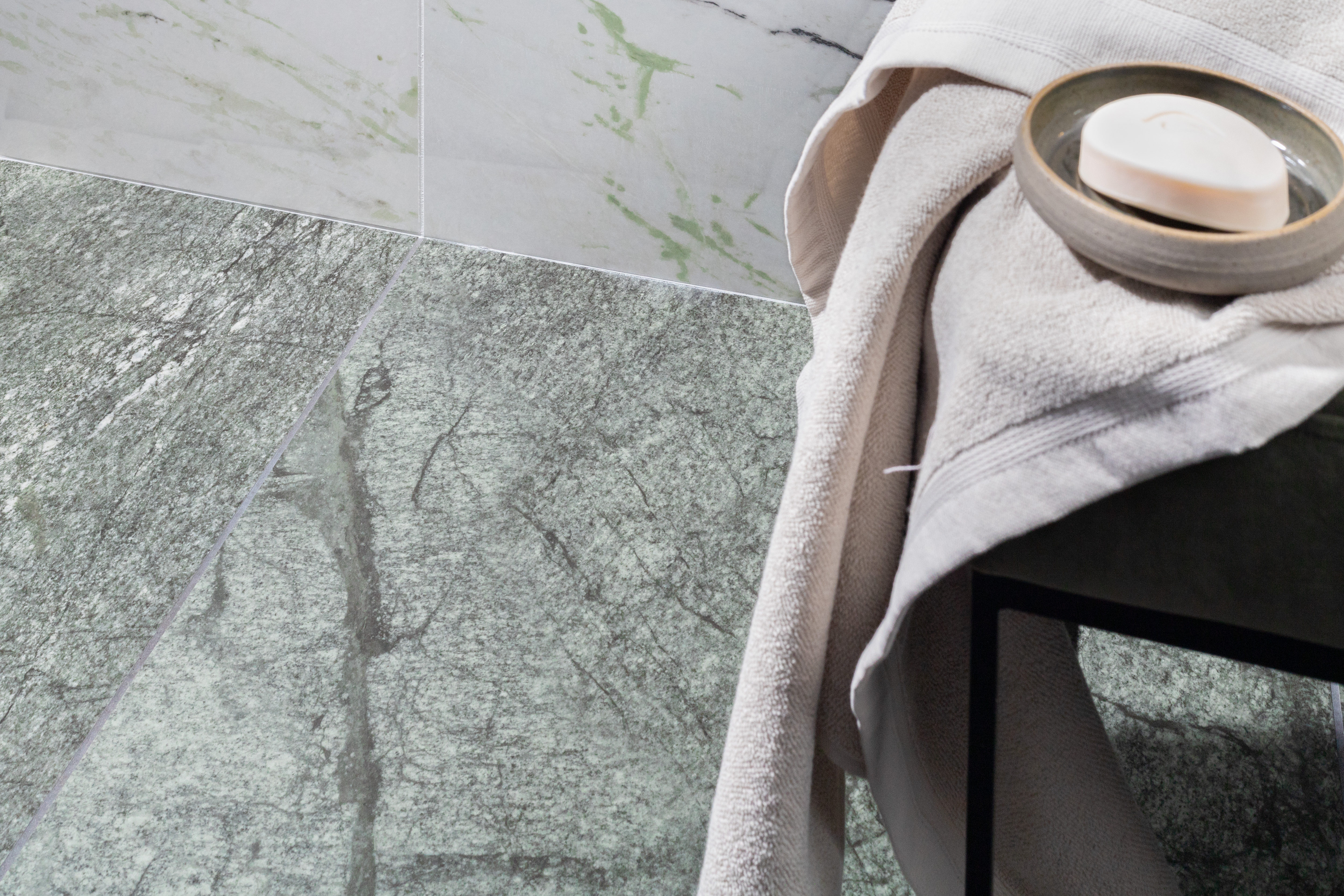 Serien Verde består av två fina marmor imitationer av grön marmor som är eleganta och förhöjer både vägg och golv. Dessa två sorter går utmärkt att kombinera, Irish green som tar sin inspiration från marmorsorten med samma namn som bryts på Irland och Calacatta green som bryts i Rumänien.