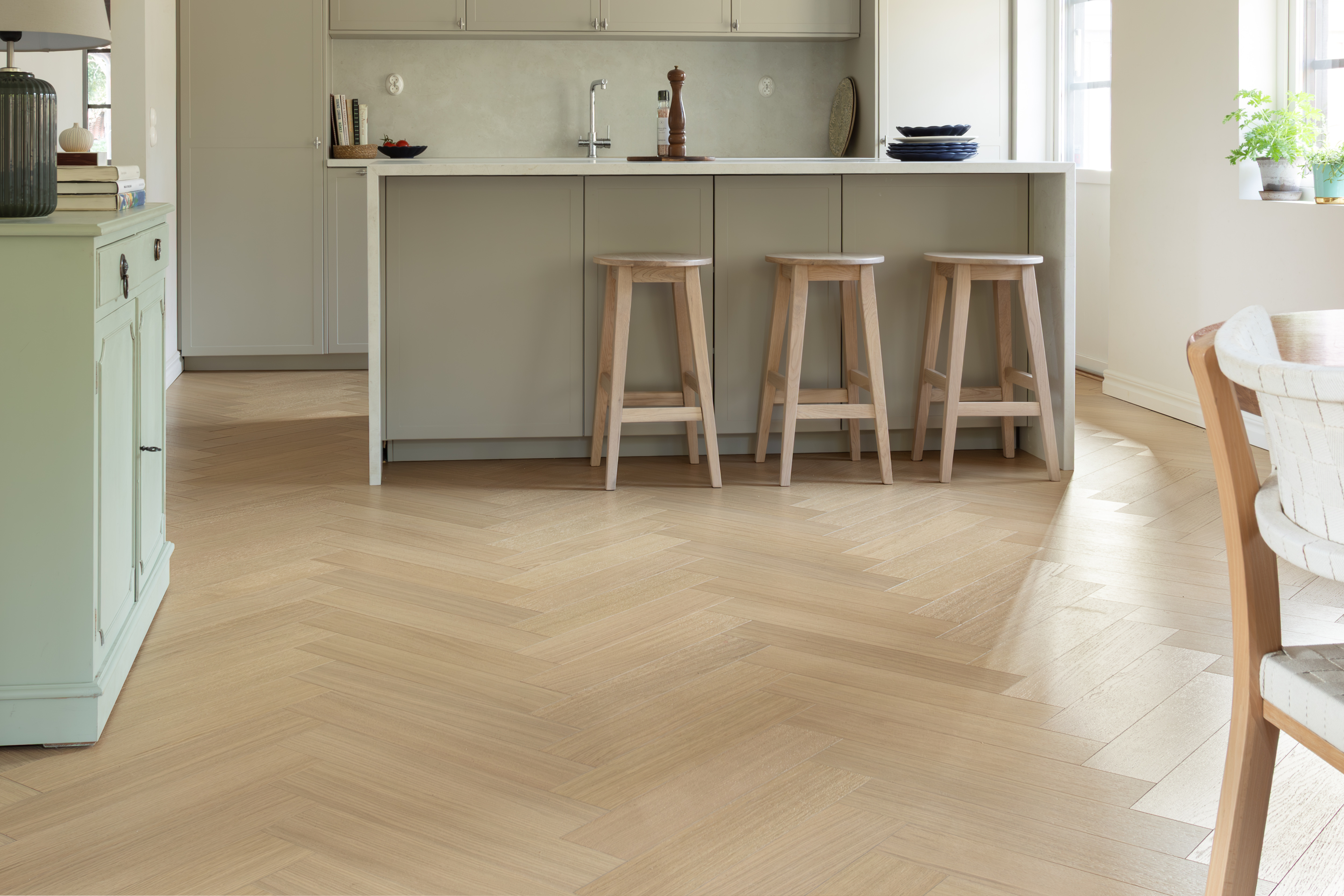 Mönstrade golv har funnits länge men nu är det både trendigt och mer rätt än någonsin. Fiskbensmönster passar perfekt i såväl gamla som moderna inredningar. Detta mönster är en klassiker som är mycket omtyckt, välj bland fyra olika kulörer som alla sätter sin unika prägel på ditt hem. Golvet läggs lätt med höger och vänsterbrädor med unifitX läggningssystem.